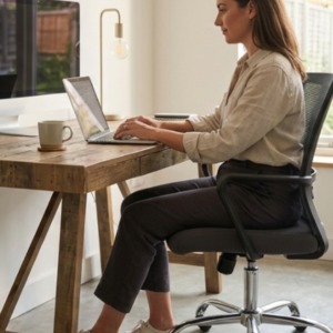 Đệm ngồi được bọc vải dày và êm, tạo cảm giác dễ chịu khi sử dụng. Thiết kế công thái học giúp nâng đỡ phần lưng tốt hơn, phù hợp cho môi trường văn phòng hoặc làm việc tại nhà.