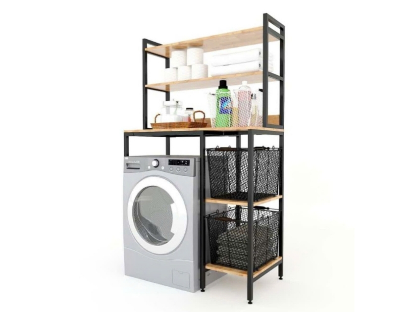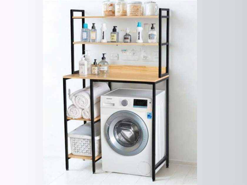 Kệ máy giặt được thiết kế theo phong cách hiện đại và tối giản, giúp tận dụng hiệu quả khoảng trống phía trên máy giặt. Nhờ đó, không gian giặt giũ trở nên gọn gàng và ngăn nắp hơn.