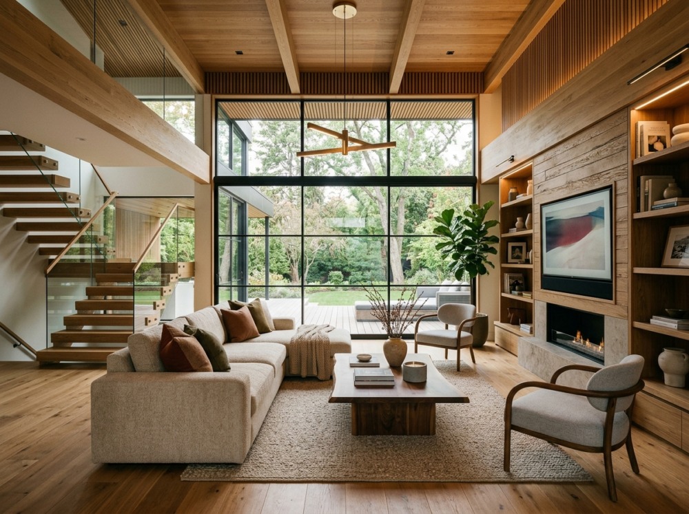 Xu hướng thiết kế nội thất phòng khách gỗ hiện đại nổi bật năm 2026