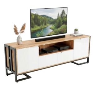 5,150,000₫Kệ TV gỗ cao su tự nhiên kết hợp khung sắt sơn tĩnh điện chắc chắn, thiết kế hiện đại với gam màu gỗ – trắng tinh tế. Kích thước 170x40x60cm phù hợp cho phòng khách, giúp bố trí tivi, đầu máy và vật dụng trang trí gọn gàng, thẩm mỹ.