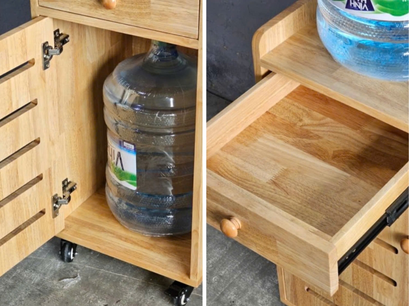 - Thiết kế: Tủ chứa bình nước + ngăn kéo tiện lợi